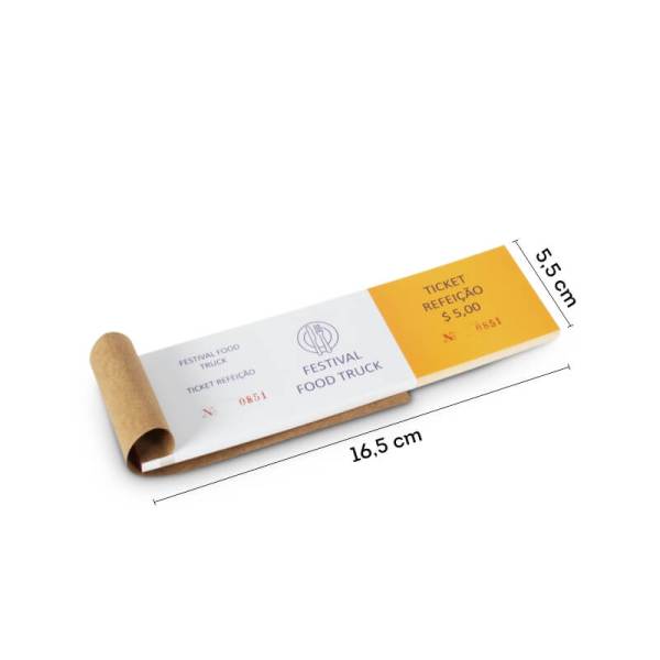 Talão Ticket de Food Truck Refeição com Canhoto e Numeração – 16,5×5,5 cm